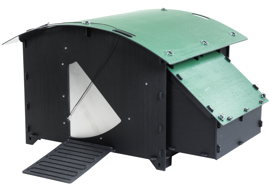 Die Nestera Hühnerställe sind die nachhaltigsten der Welt! Sie werden mit grüner Energie aus recyceltem und wiederverwertbarem Kunststoff hergestellt.